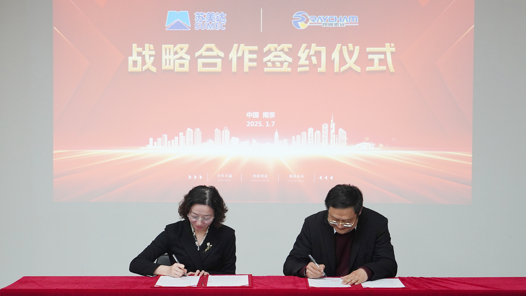 1月7日,南京中科煜宸激光技術(shù)有限公司(以下簡(jiǎn)稱“中科煜宸”)與蘇美達(dá)國(guó)際技術(shù)貿(mào)易有限公司(以下簡(jiǎn)稱“蘇美達(dá)”)簽訂戰(zhàn)略合作協(xié)議。雙方就激光智能制造設(shè)備海外市場(chǎng)開(kāi)拓、出口業(yè)務(wù)合作等領(lǐng)域開(kāi)展全方位合作。蘇美達(dá)殷文蘭與中科煜宸CEO邢飛出席簽約儀式。
