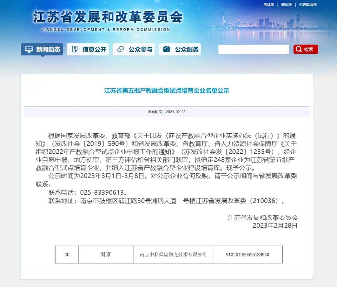 2月28日,江蘇省發(fā)展和改革委員會(huì)發(fā)布通知,公布江蘇省第五批產(chǎn)教融合型試點(diǎn)培育企業(yè)名單,中科煜宸成功入選,并被納入江蘇省產(chǎn)教融合型企業(yè)建設(shè)培育庫。